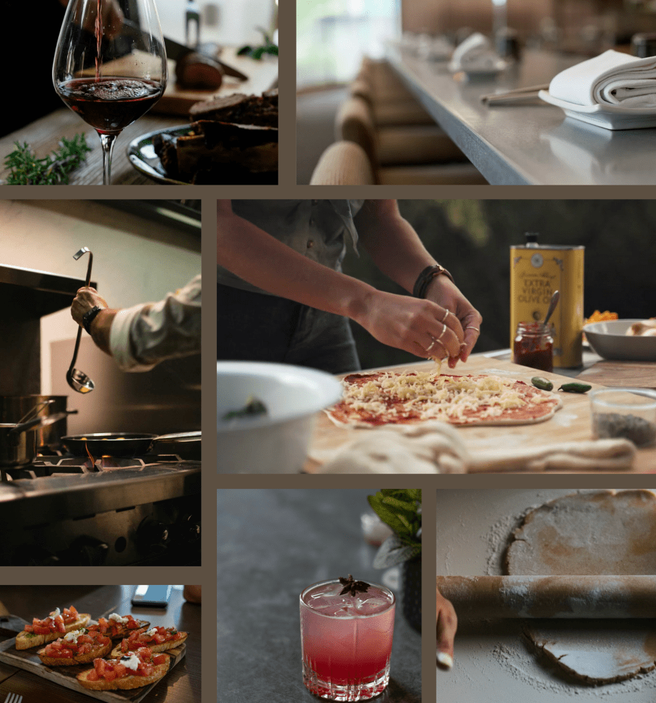 Photography – From freshly rolled pasta dough to a glass of deep red wine, the imagery captures the essence of handcrafted meals and intimate gatherings.