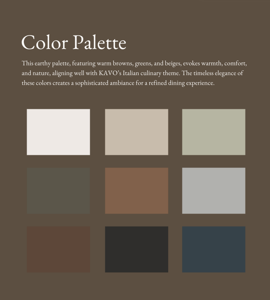 From the color palette to the logo, everything was designed with intention. The deep browns, warm beiges, and muted greens reflect the natural, rustic elegance of Italian dining, while the EB Garamond font gives a nod to timeless craftsmanship and heritage.